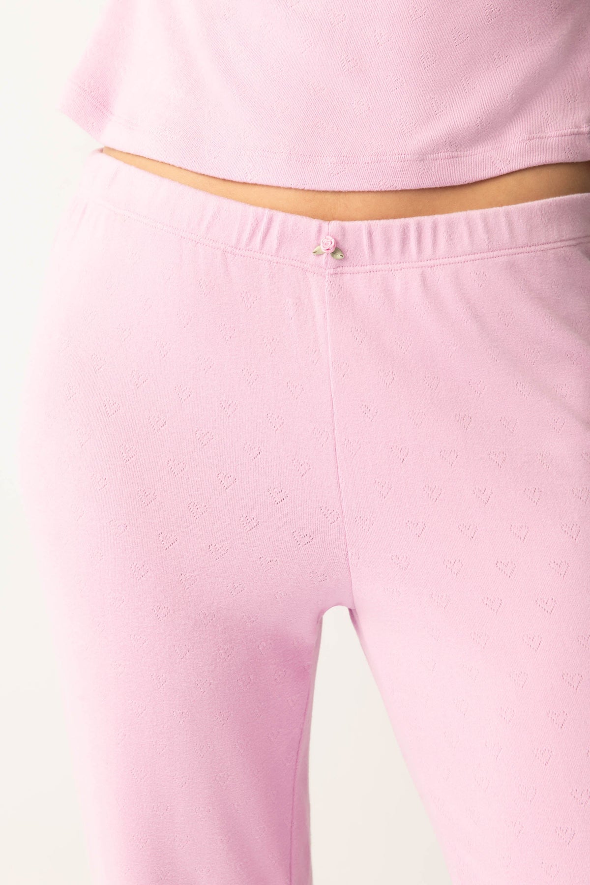 Romance meets comfort in these pink banded PJ pants, complete with a satin rose on the waistband. Soft and stylish, they're perfect for lounging with a playful, flirtatious flair, turning every evening into a love-filled escape.