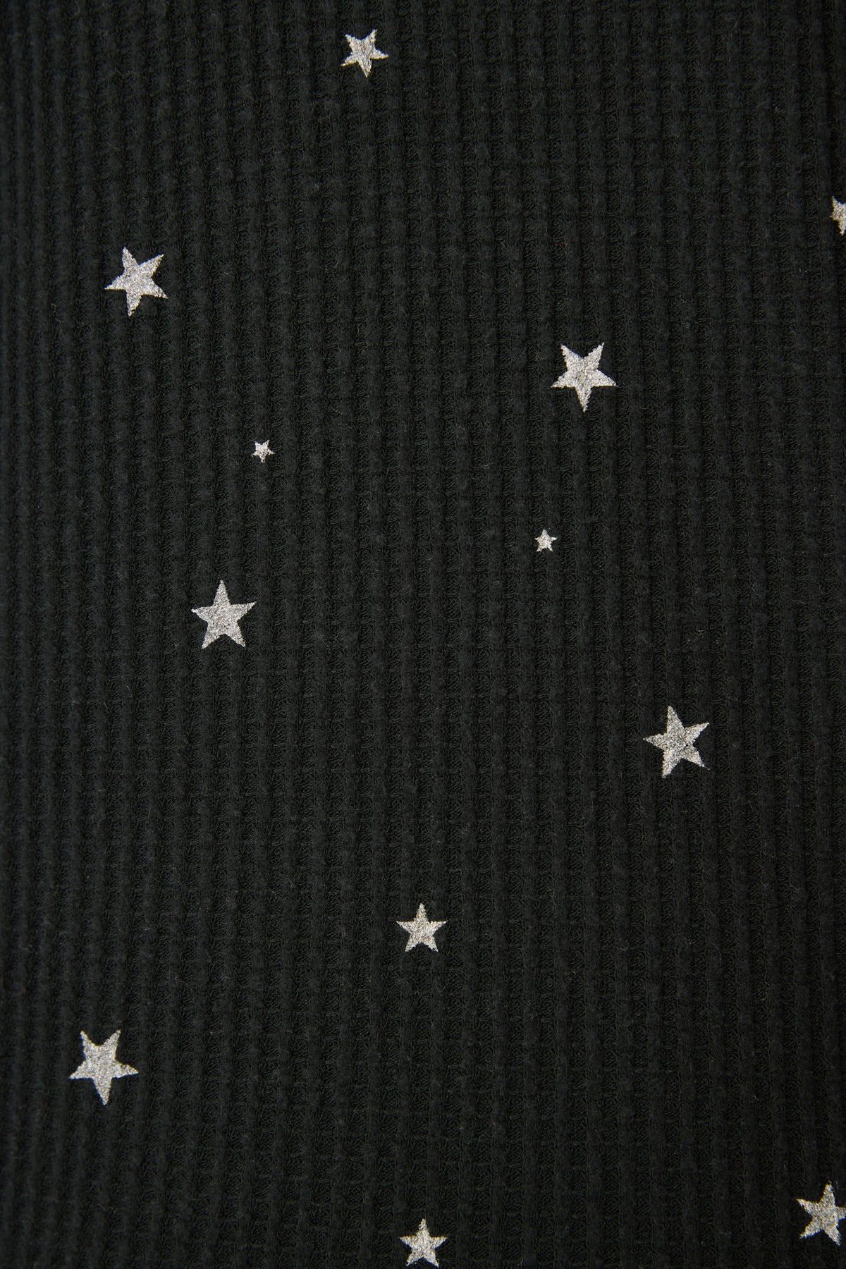 Wish upon cozy nights in after a day on the slopes with this brushed thermal pajama set, speckled with tiny white stars. The long-sleeve henley top pops with pink trim, while the jogger pants finish with a matching pink tie and striped cuffs—made for winding down fireside, cocoa in hand.