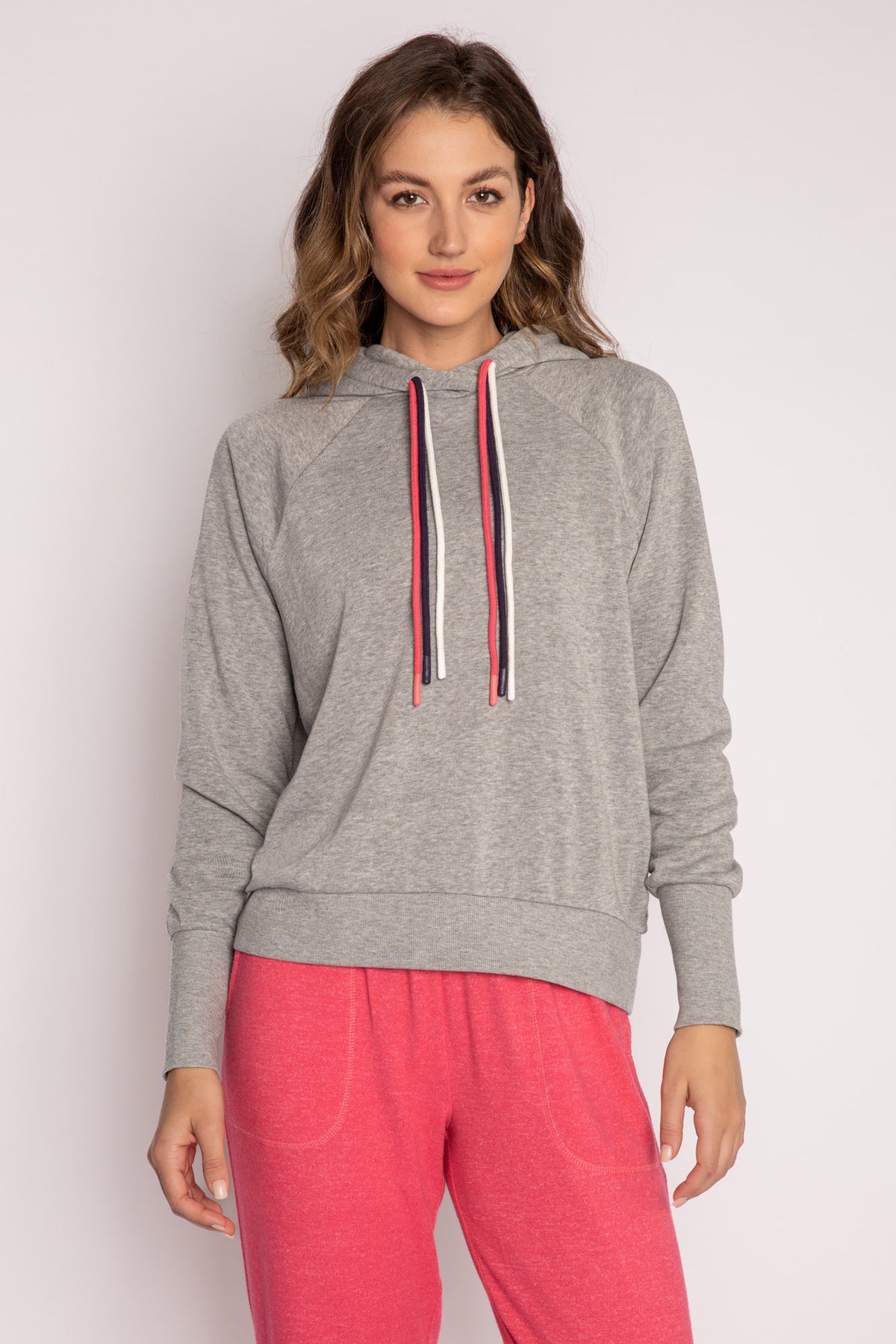 DESCRIPTION: Your basic grey fleece hoody deserves an upgrade. Our high-pile fleece is extra soft, and the deep rib cuffs give this classic a twist. Finished with triple-colored drawcords at hood for a simple standout detail.