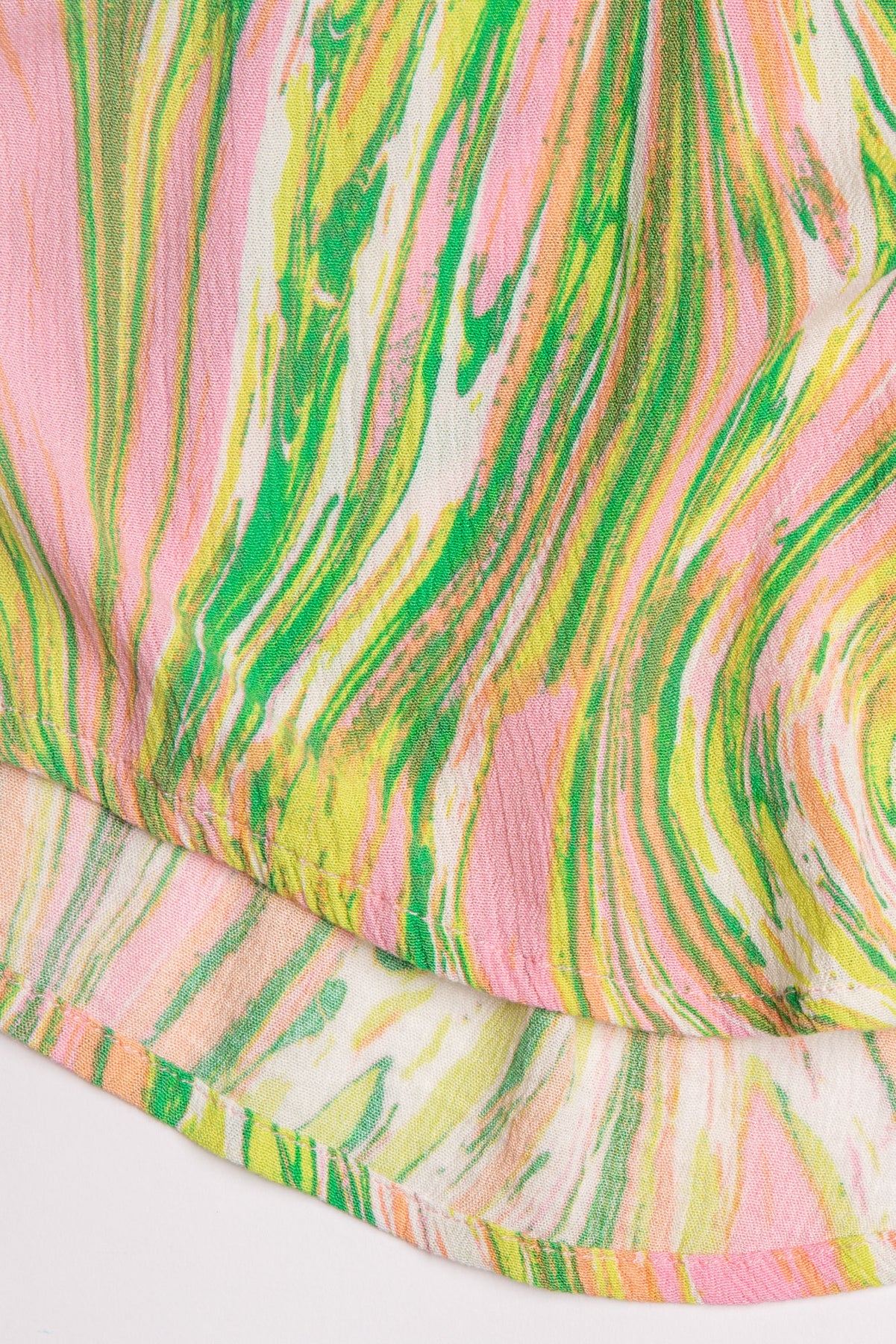 DESCRIPTION: Weekend plans call for a statement dress-duster in a trendy print? We've got your refreshing limeade print on a favorite gauzy woven. Full-button front so you can customize your look. This style was made in a *Women Empowered Factory (*At least 51 percent owned, controlled, or managed by a woman or women.). Model is 5' 10" wearing size small.
