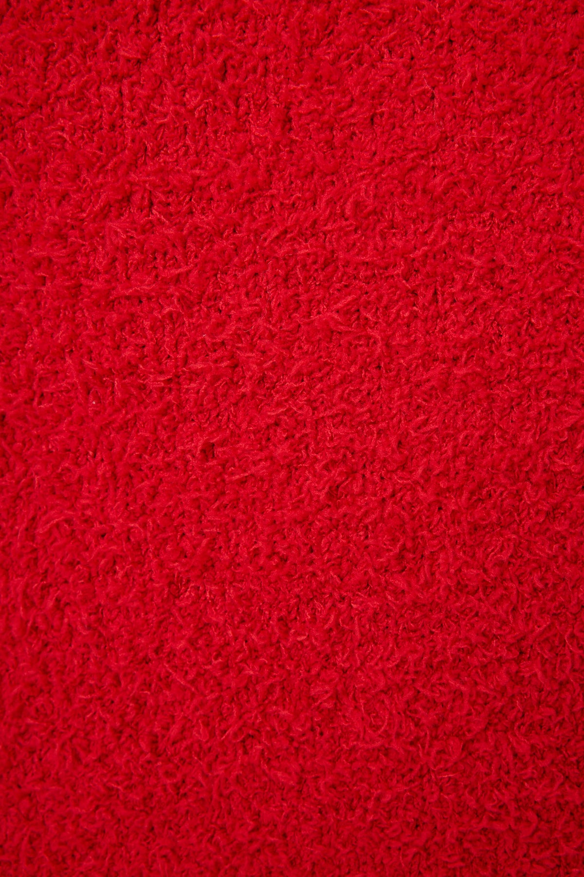 Snuggle into the holiday season with these red bouclé pants, designed with a drawstring waist, wide legs, and handy side pockets. Plush and relaxed, they’re a cozy base for lounging, layering, or festive
