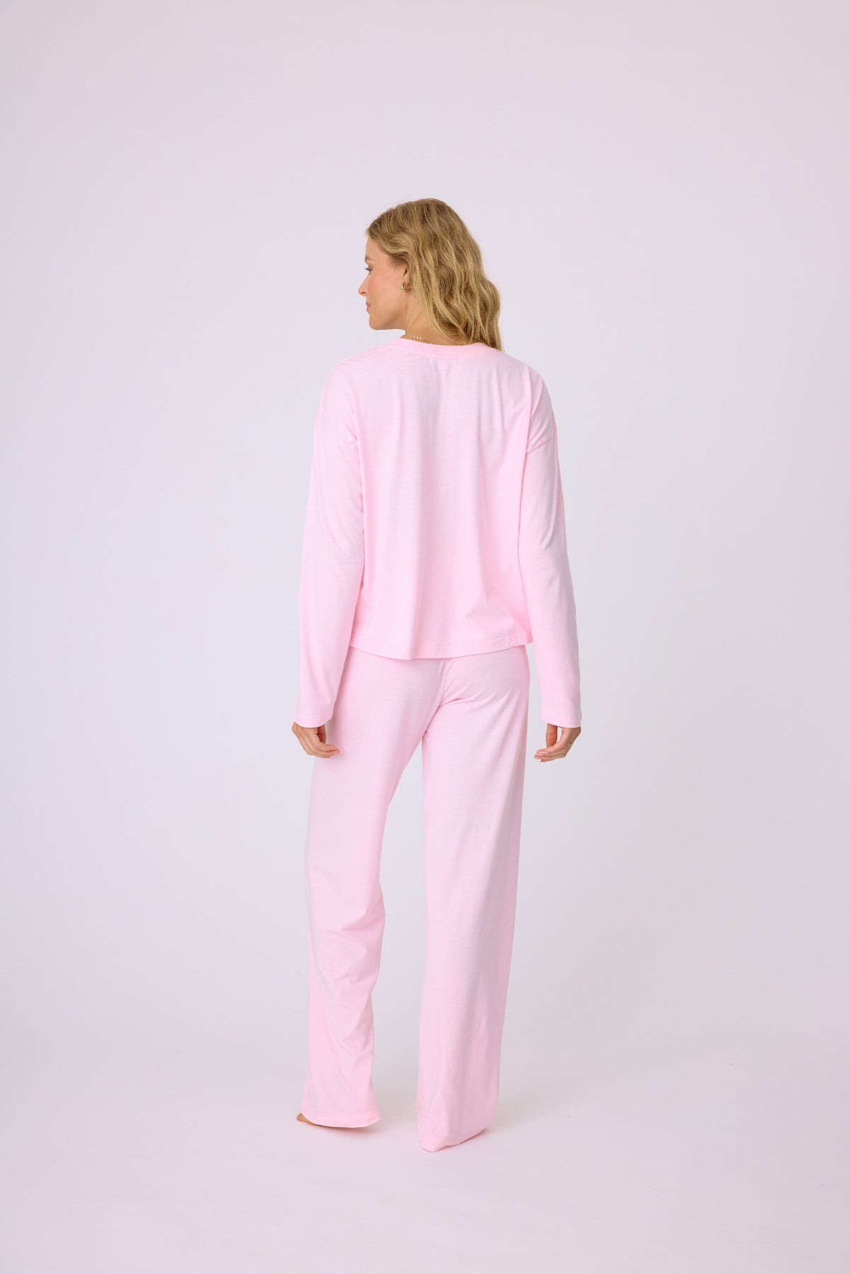 Experience ultimate comfort with our cotton modal jersey blend lounge set, softer than your favorite t-shirt. This set includes a graphic print long sleeve t-shirt paired with open leg lounge pants, offering the perfect combination of style and relaxation. The breathable cotton modal blend ensures all day comfort. And the best part? This set comes in at under $100. Perfect for lounging or casual outings, it's a must-have addition to your wardrobe!