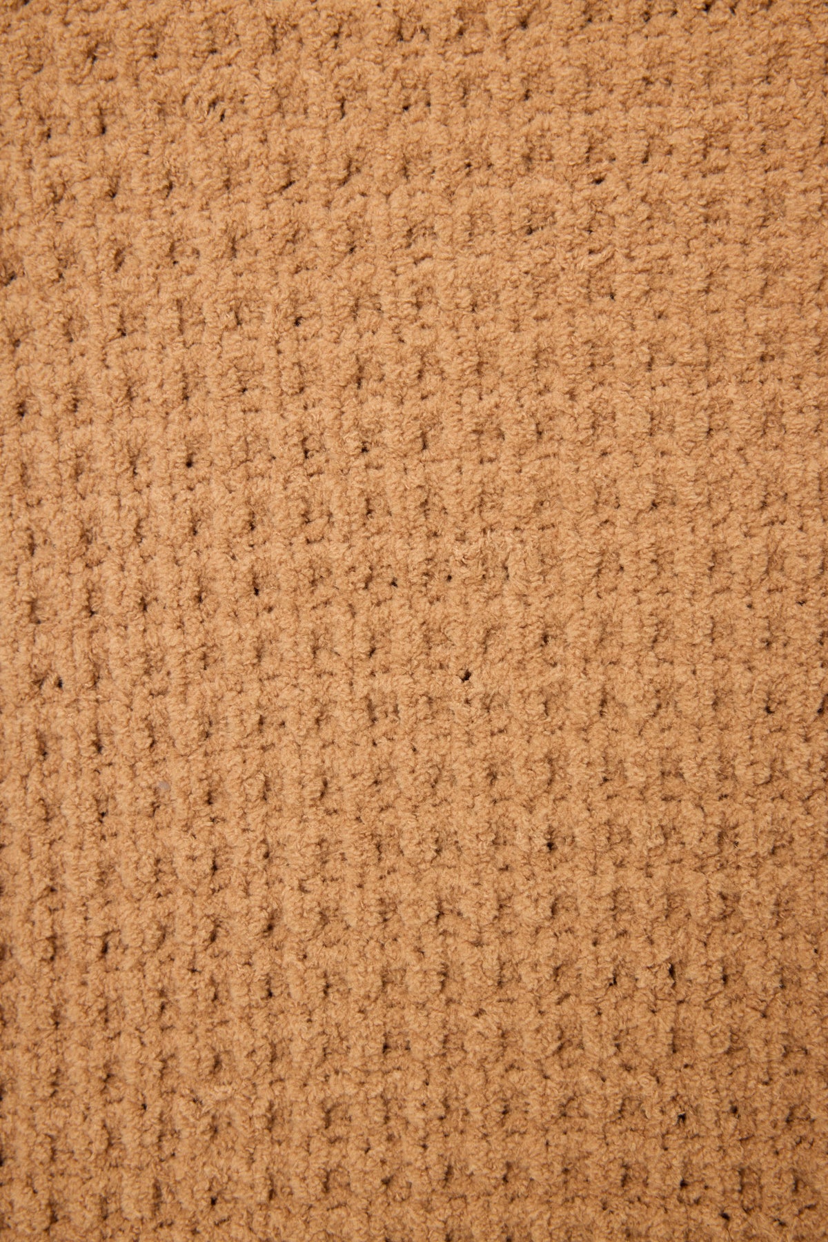 Soft, textured, and built for endless cozy moments, this chenille waffle set is a cold-weather constant. The crewneck top drapes in a relaxed fit with cuffed sleeves and hem for that snug-but-slouchy feel, while the jogger pants cinch at the waist and taper to cuffed ankles for around-the-clock comfort. Done in a warm tan hue, it’s the set you’ll reach for on repeat—whether curling up with a book, brewing a second cup of coffee, or riding out the chilly months in style.