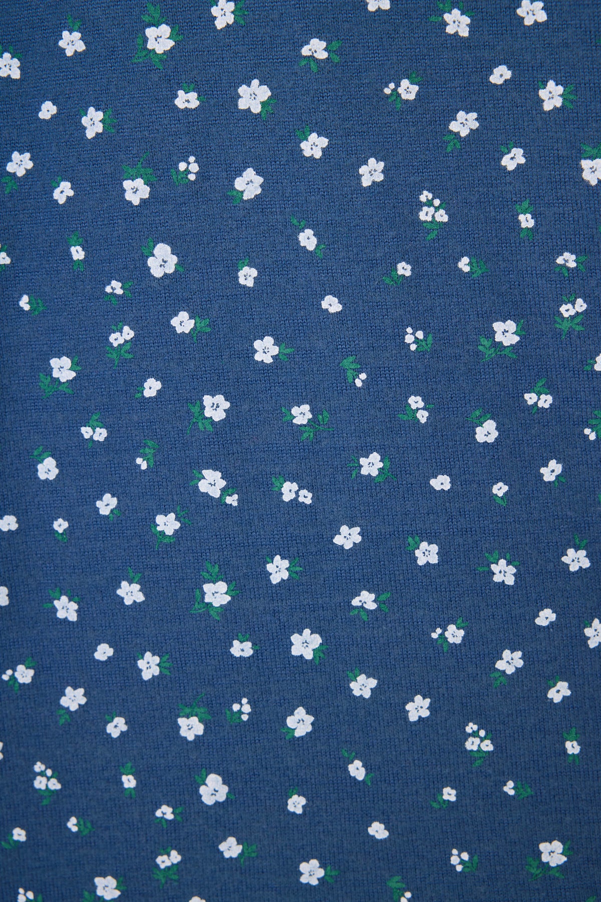- Women’s blue pajama shorts in peachy jersey with ditsy floral print, striped waistband, and relaxed fit.