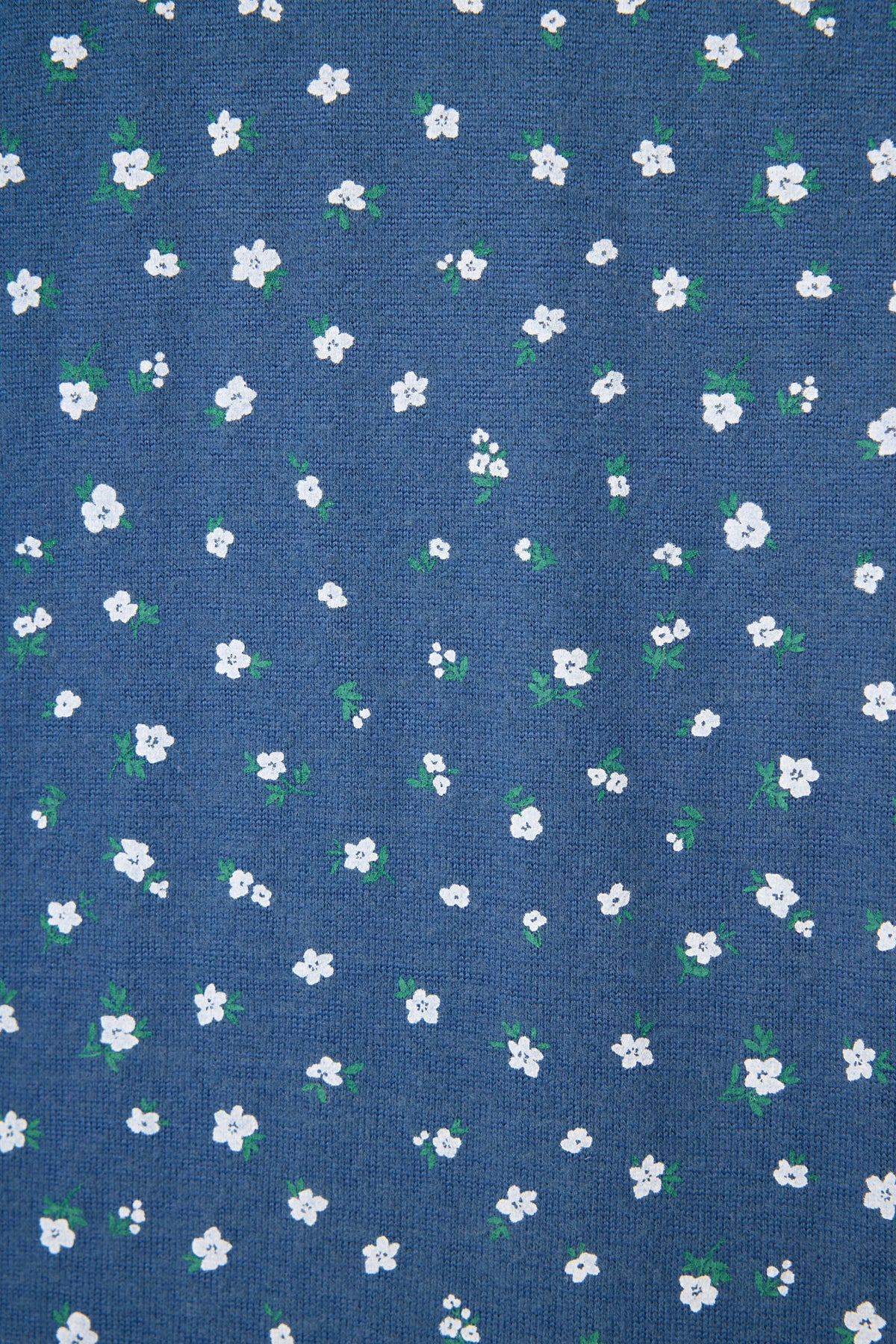 Dreamy and oh-so darling, this pajama set is crafted from soft peachy jersey with a ditsy floral print on a blue backdrop, finished with striped trim. Its easy fit keeps things comfy and sweet—just right for cozy nights in.