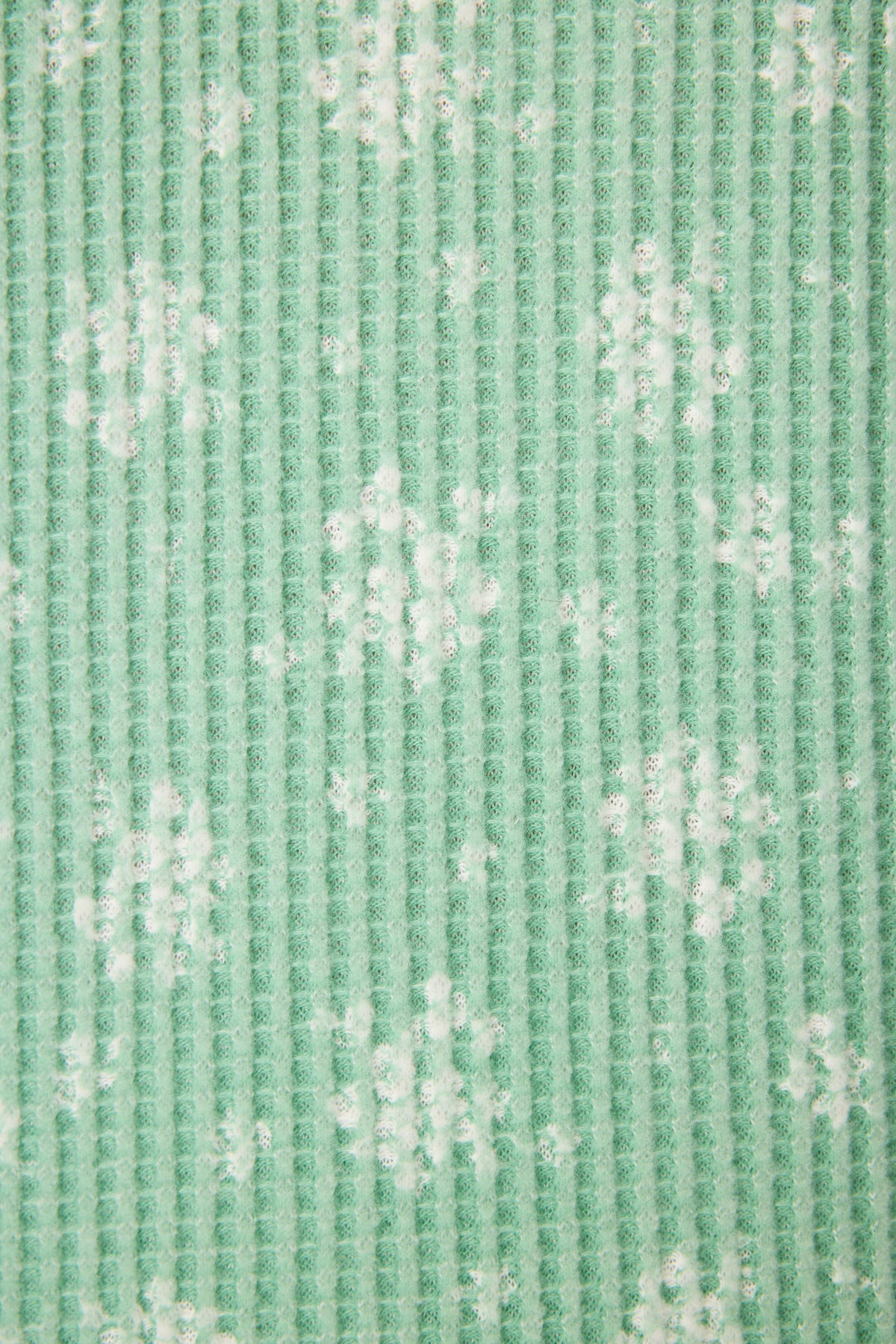Close-up of the P.J. Salvage DTC Exclusive - SNOWFLAKE PJ SET 3 PIECE GIFT SET featuring textured green fabric with a vertical ribbed pattern and scattered white snowflake designs.