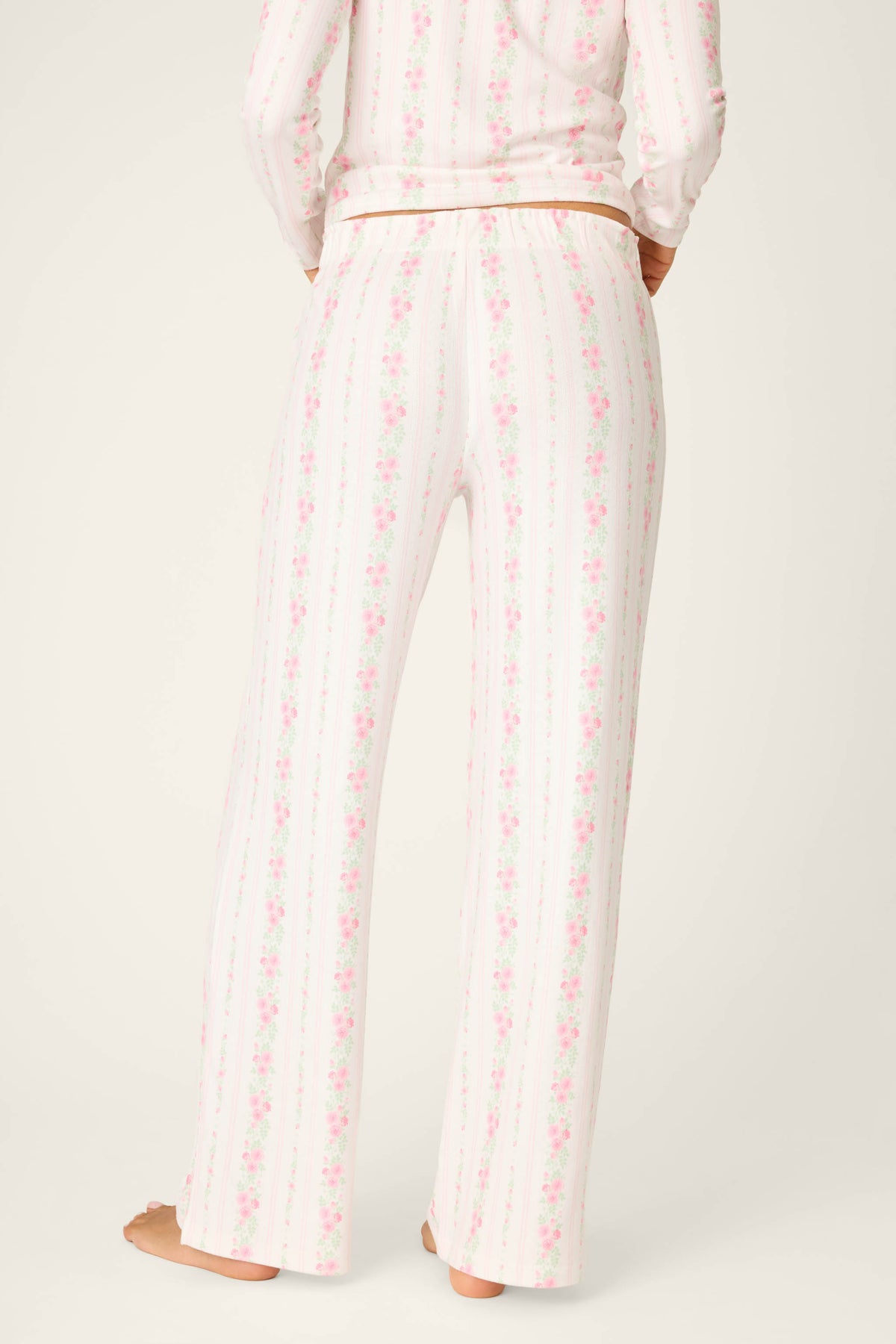 Romantic, soft, and made for restful moments at home, these pajama pants bring a timeless, feminine feel to downtime in soft ivory with a delicate rose floral print. Crafted from cozy, lightweight double brushed pointelle, they feature an elastic waistband and a three-button placket for a relaxed, coordinated look.