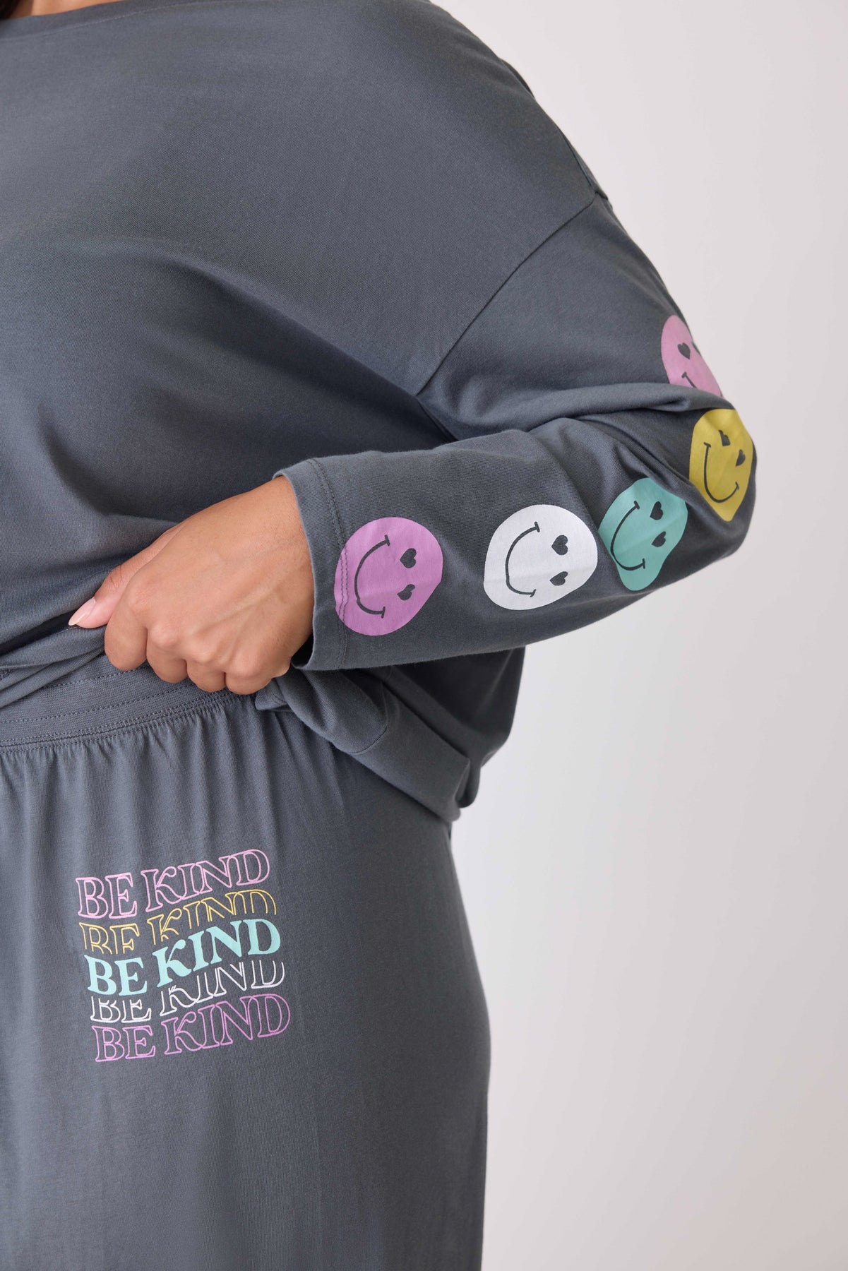 Experience ultimate comfort with our cotton modal jersey blend lounge set, softer than your favorite t-shirt. This set includes a graphic print long sleeve t-shirt paired with open leg lounge pants, offering the perfect combination of style and relaxation. The breathable cotton modal blend ensures all day comfort. And the best part? This set comes in at under $100. Perfect for lounging or casual outings, it's a must-have addition to your wardrobe!